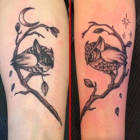 couples tattoos owls reds tattoo colchester essex